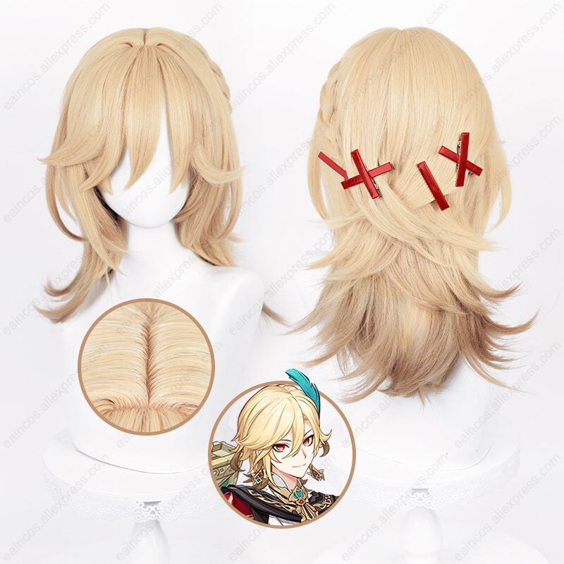 Kaveh-50 cm,合成コスプレウィッグ,ゴールドグラデーション,耐熱性,ロングリネン,ハロウィーンパーティー