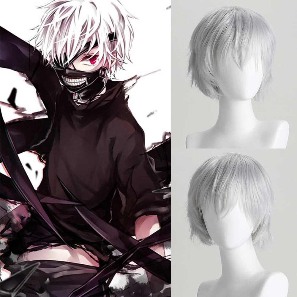 若い男性のための短い白い天然合成かつら,耐熱繊維のかつら,コスプレウィッグ,ハロウィーンパーティー