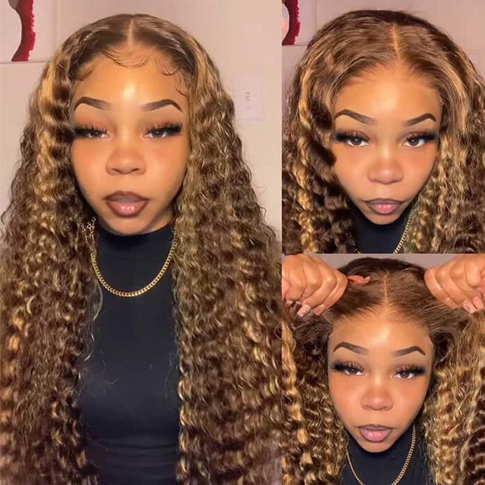 深さの波のレミーウィッグ、レースフロントウィッグ、接着剤なしの人間の髪の毛、ウェアに対応、HDレースクロージャー、7x5 5x5