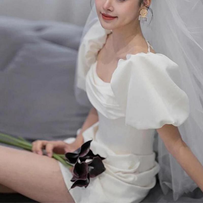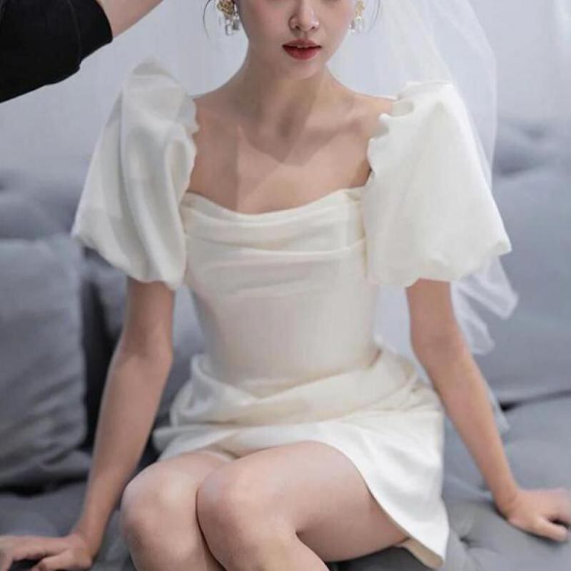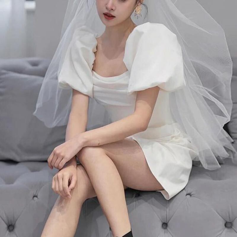 パフスリーブの短いパーティードレス,ファッショナブルでセクシー,女性向け,シンプルなウェディングドレス,新しいコレクション2021