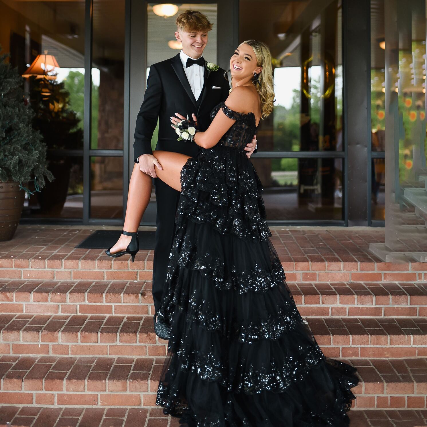 光沢のあるスパンコールのウェディングドレス,高級,ハイサイド,裸の肩,大きいサイズ,絶妙な黒