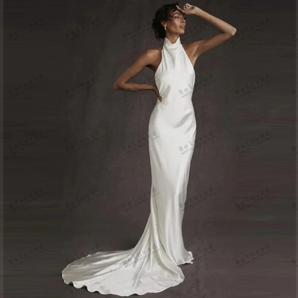 エレガントな結婚披露宴のドレス,裸の背中,地面の長さ,シース,ノースリーブ,魅力的