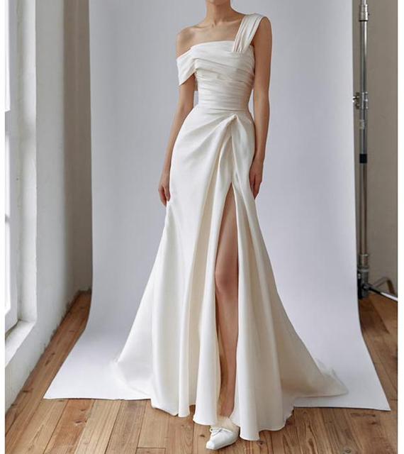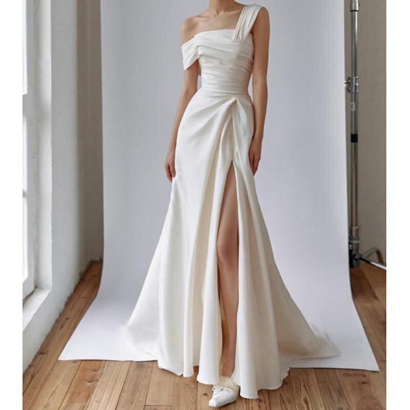 女性のためのセクシーなサテンのウェディングドレス,ロングドレス,シンプル,ソフト,エレガント,新しいコレクション2024