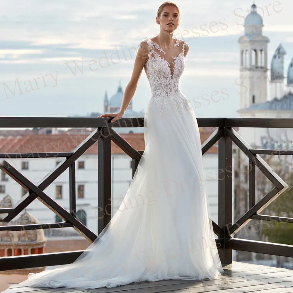 女性用ネックウェディングドレス,美しいレースアップリケ,ケープ,ホルターレスボタン,チュールドレス,ライン,魅力的,2024