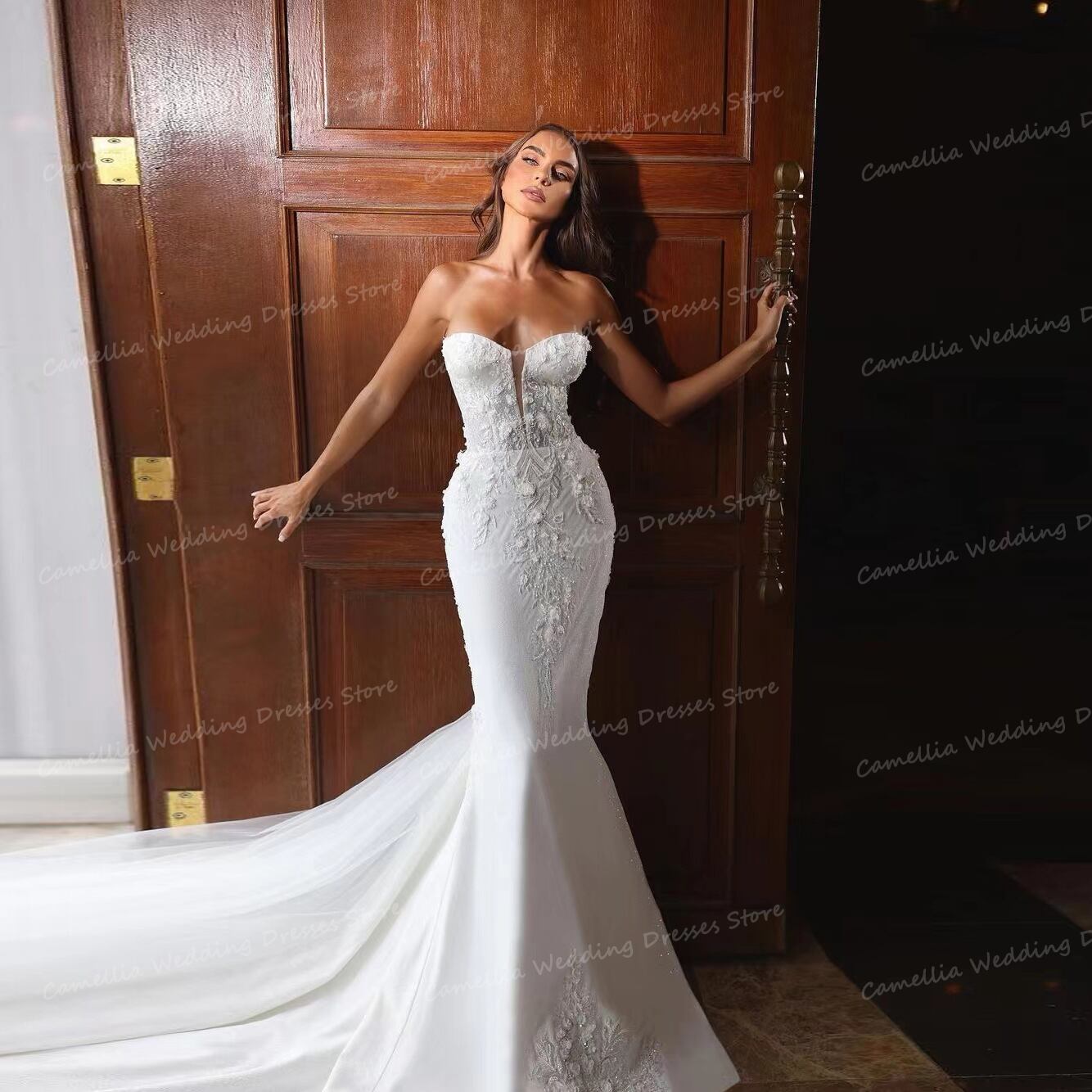 女性のためのノースリーブの背中の開いたウェディングドレス,花嫁介添人のドレス,イブニングドレス,柔らかく,魅力的,2024