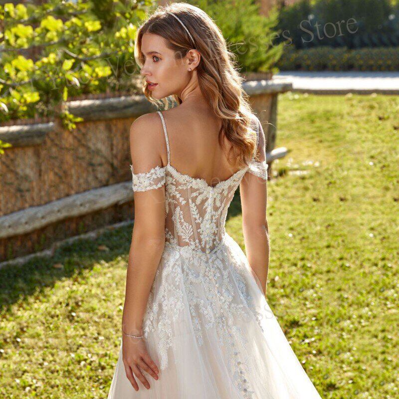 Sweetheart-女性のウェディングドレス,ライン,レースのアップリケ,ボタン,花嫁のドレス,裸の肩,チュール,サイドスリット,エレガント,202