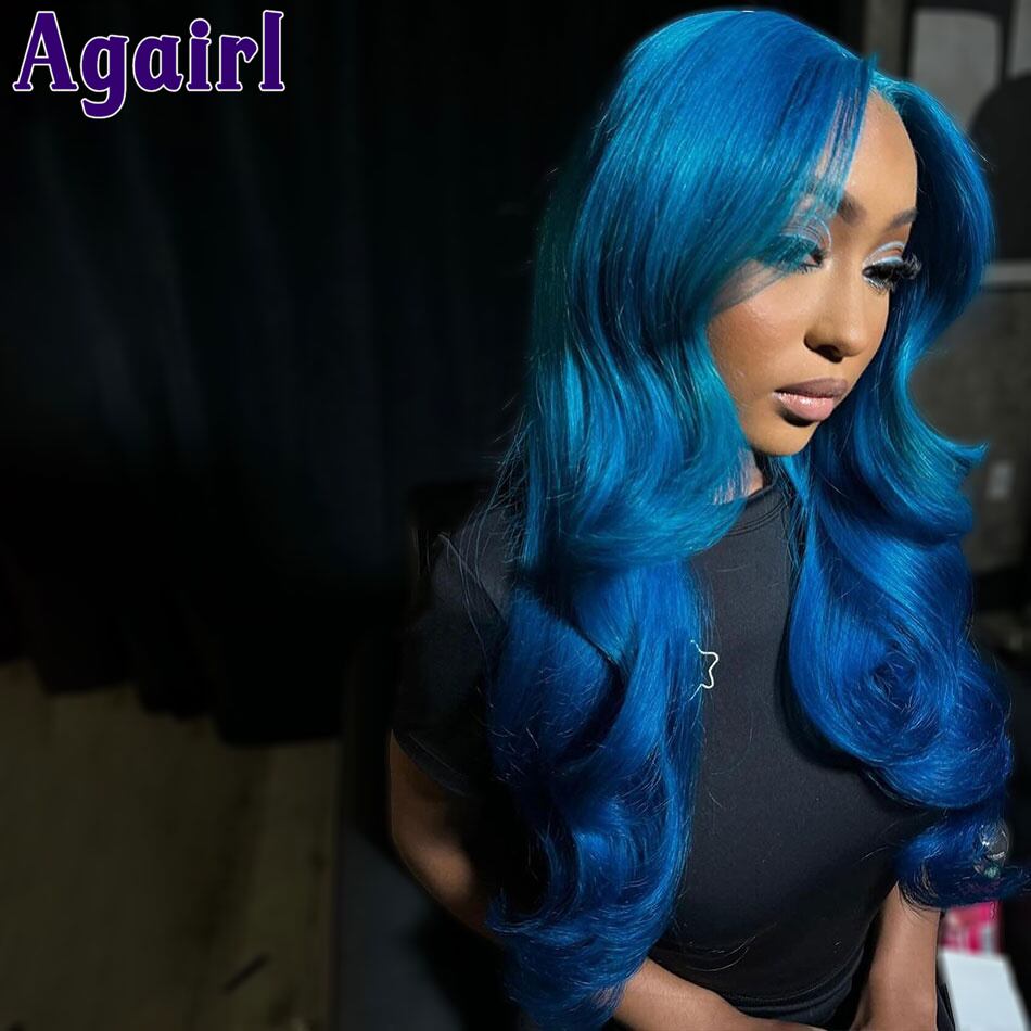女性のための事前に摘み取られた透明なレースのキャップウィッグ、人間の髪の毛、ボディウェーブ接着剤なし、ライトブルー、13x4、6x4、13x6