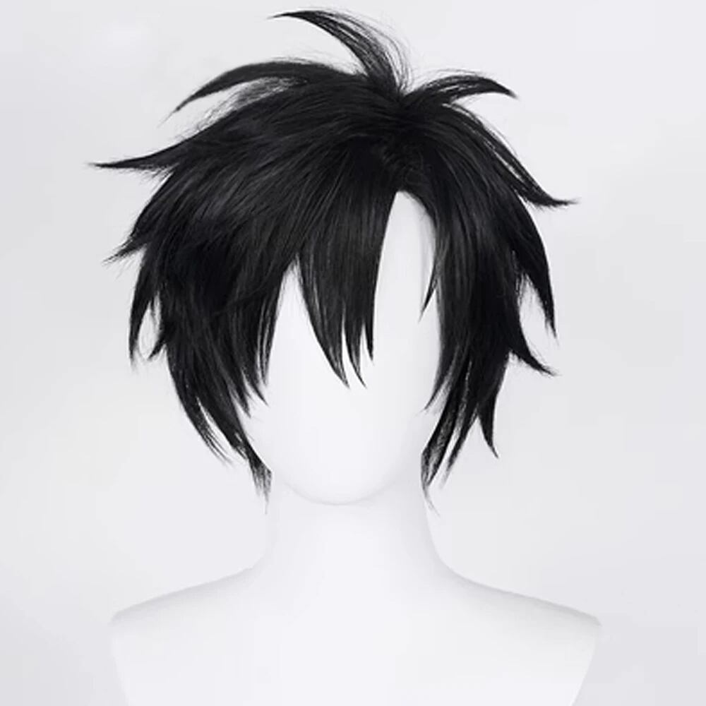 男性と女性のためのフリンジ付き合成ショートストレートウィッグ,アニメ,自然,ふわふわの髪,日常のパーティー