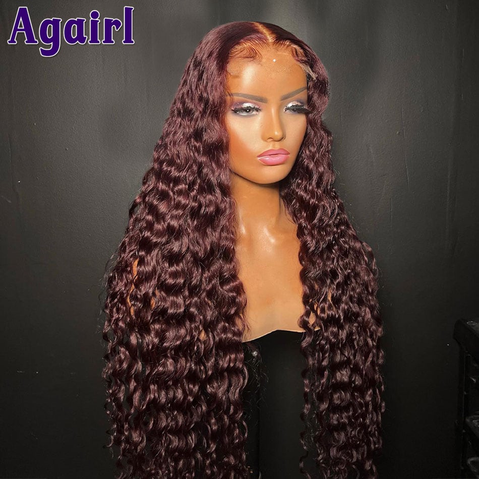 黒人女性、ウォーターウェーブ、バーガンディ99j、ダークレッド、13x4、32 \