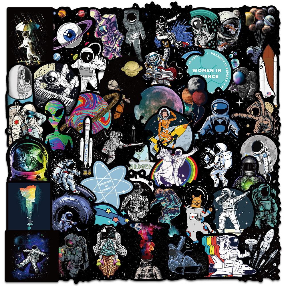 子供のための漫画の宇宙飛行士のステッカー,黒い宇宙飛行士のラベル,DIY日記,携帯電話ノートパソコン,落書きデカール,10/30/50個