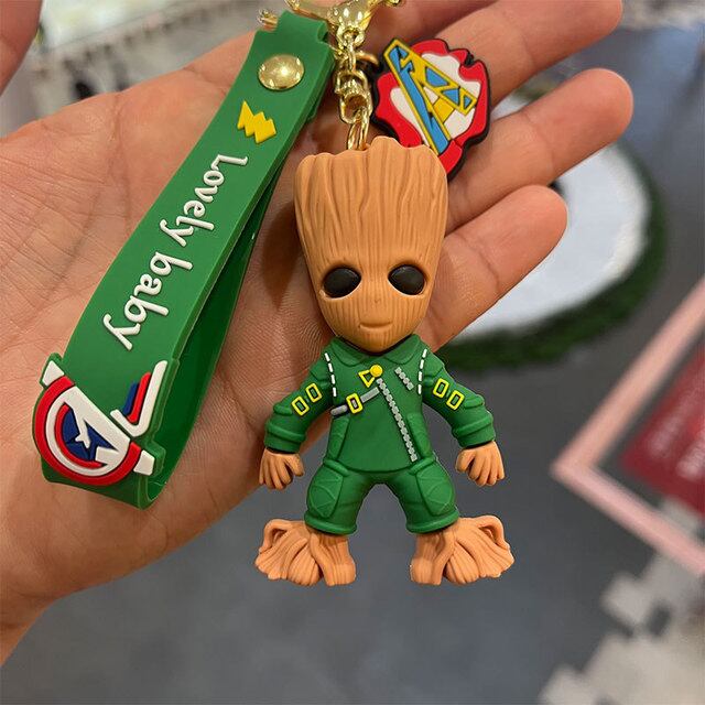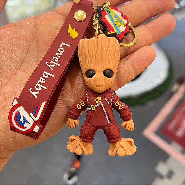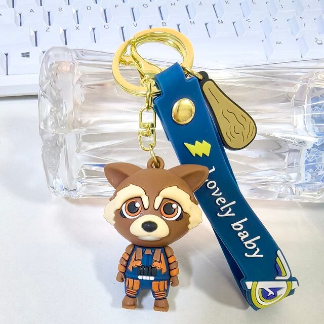 男性と女性のためのギャラクシーキーホルダーのマーベルガードディアンズフィギュア、グロートローラクーン、ファン