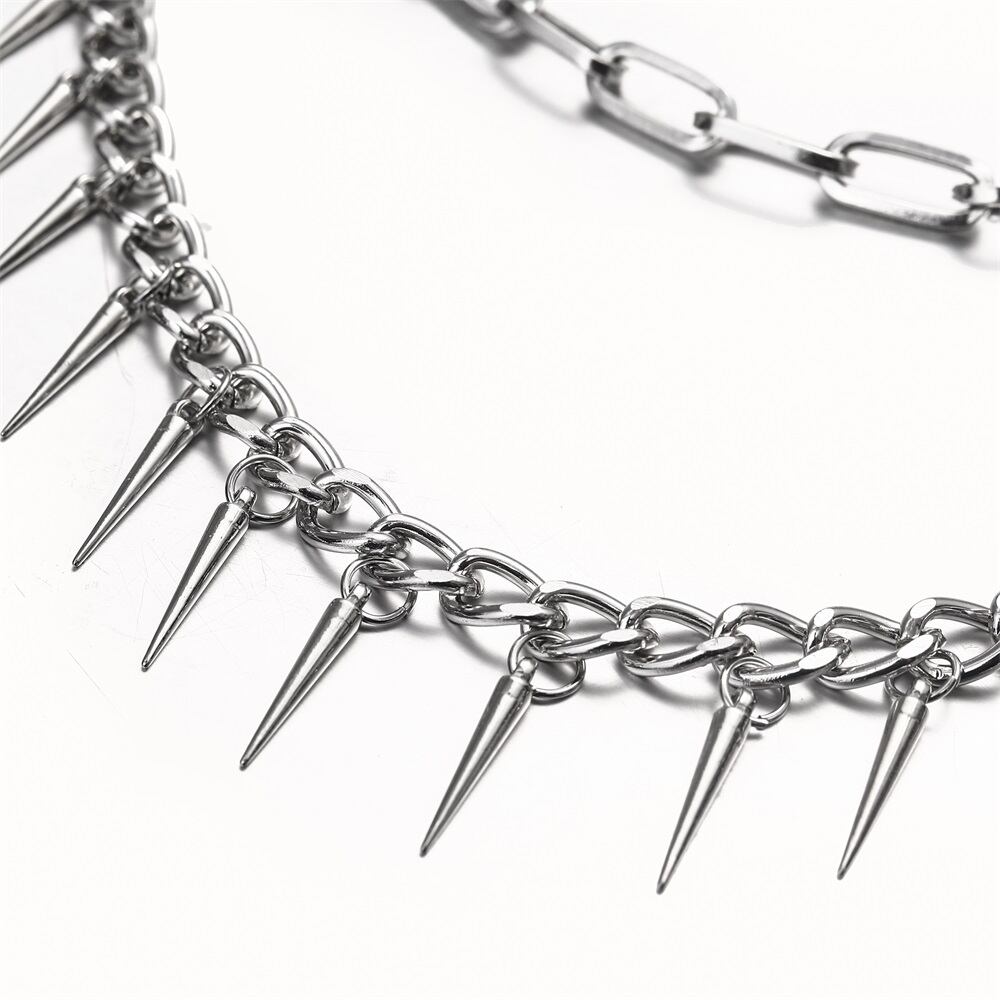 女性と男性のためのシックなパンクチェーンジーンズ,スパイクキーホルダー,ハラジュク,グランジスタイル,美的アクセサリー