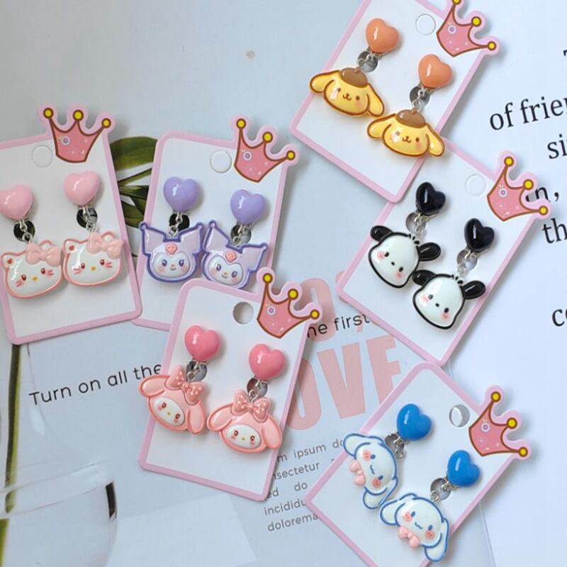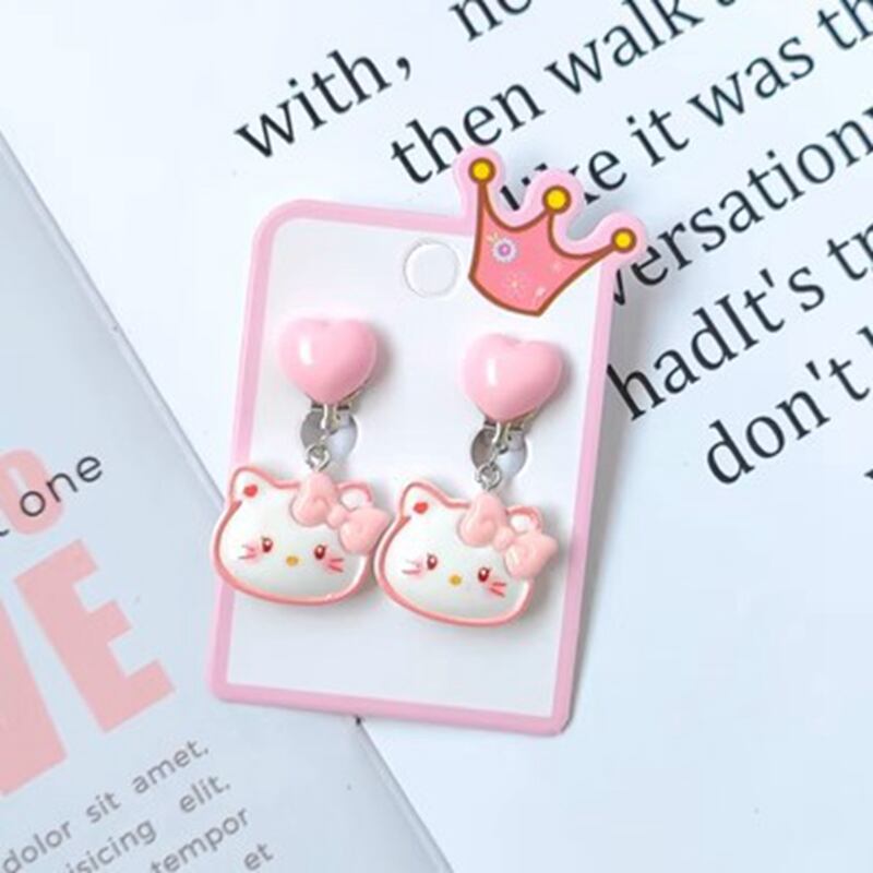 Sanrio漫画の偽のイヤリング、kromi、helloキティ、ピアスなし、ペンダント耳クリップ、樹脂の子供、女の子のパーティージュエリーギフト