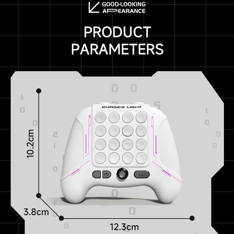 色と光の楽しいコンソールライト、ストレス解消に最適!子供も大人も楽しめるゲーム機能付き。手と目の協調能力を鍛え、記憶力と反応力を向上させ、さらに集中力もアップ!クリスマスにぴったりの贈り物としても最適です。ランダム色のLED照明がゲームをさらに盛り上げます。気軽に持ち運べる軽量設計で、どこでも楽しめます。バッテリーは別売りです。子供と大人のための軽いゲームコンソール,抗ストレスおもちゃ材料:ABSプラスチック+pcbaパッケージ:梱包箱が輸送中に損傷しないことを保証することはできません。