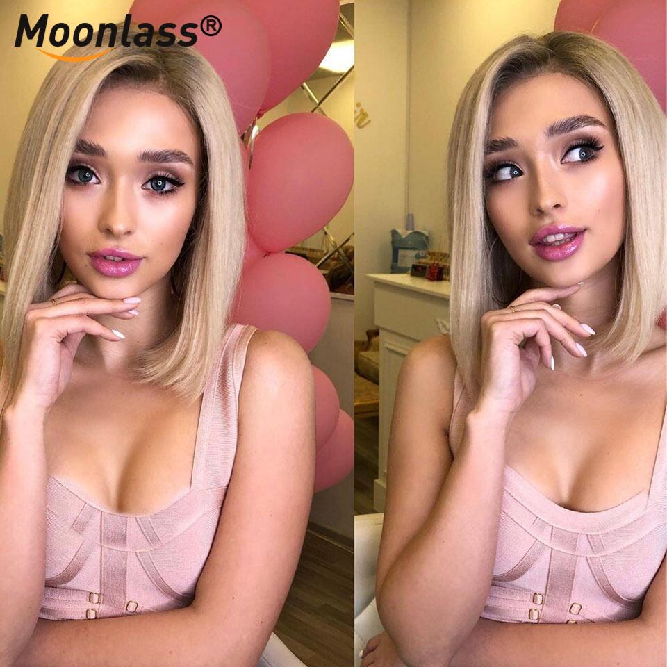 ブロンドの短いボブウィッグ,天然のヘアライン,接着剤なし,HDレースのフロント,事前に摘み取られた,蜂蜜