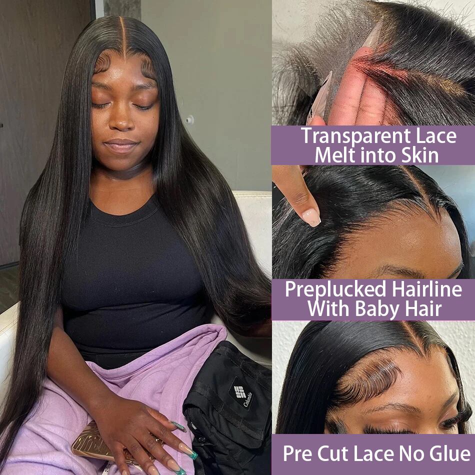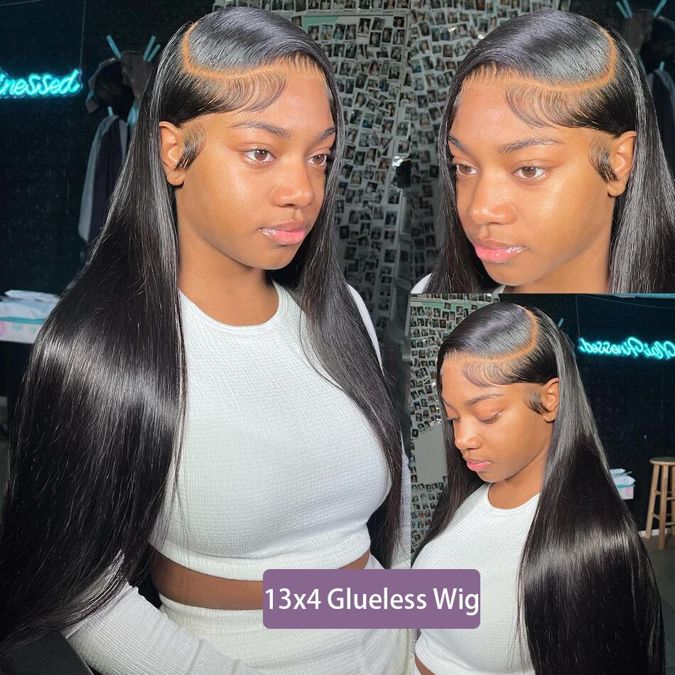 女性のための骨の滑らかな事前にカットされた接着剤のないかつら、レースの三皮を肌にして着る準備ができています、紳士の準備はできていません、13x4、7x