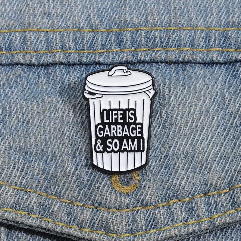 パーソナライズされたゴミ箱エナメルピン、人生はごみと、私のブロンド、ラペルバッジ、感情的なジュエリーギフト、負の見積もり
