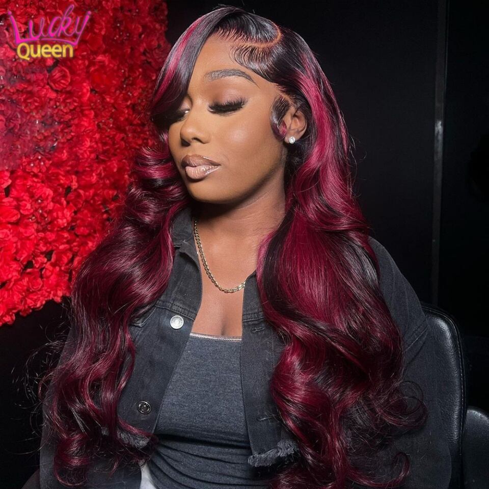女性用レースフロントウィッグ,ボディウェーブ,事前に摘み取られた,密度180%,バーガンディ,バーガンディ,13x6, 13x4