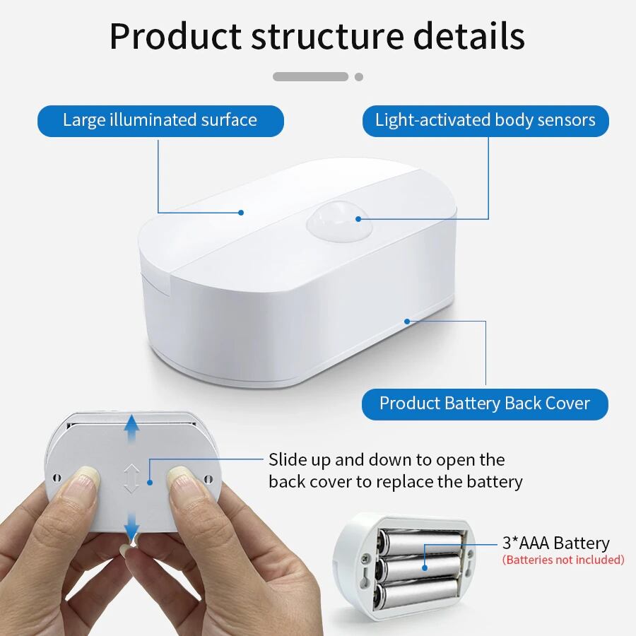 仕様:名前:ミニLEDナイトライトパワー:0.5w明るさ:30lm色温度:コールドホワイト(6000-6500k);ウォームホワイト(2800k-3200k)センサー距離:120°;3-5mバッテリー:3*aaaバッテリー(含まれていません)window.adminAccountId=231787879;
