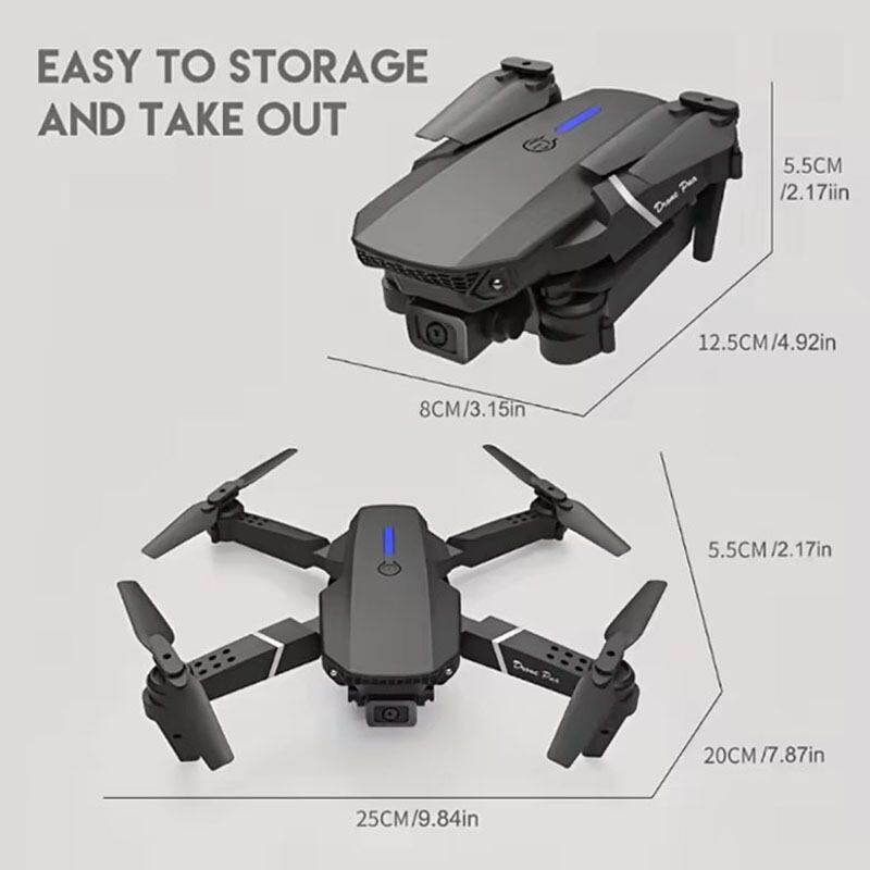 新しく登場した折りたたみ式RCヘリコプター、E88 Proは、プロ仕様の4Kカメラを搭載し、ハイクオリティな1080p映像を提供します。デュアルHDカメラにより広角撮影も可能で、どんなシーンも逃さず捉えることができます。さらに、Wi-Fi FPV機能でリアルタイム映像を楽しめ、高度保持機能やワンキー自動返航機能で安定した飛行が可能です。