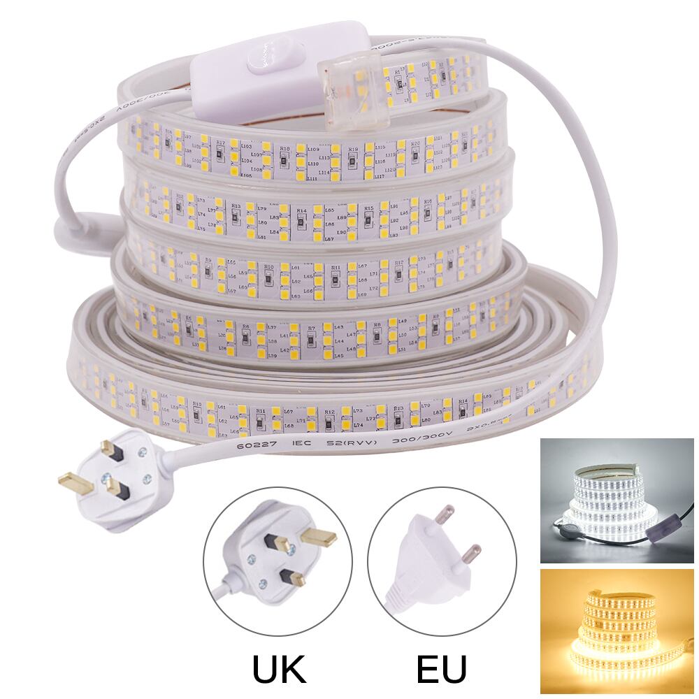 RGB LEDストリップライト,スイッチ付き,フレキシブル,防水,3列,220V,10m 276ダイオード/m