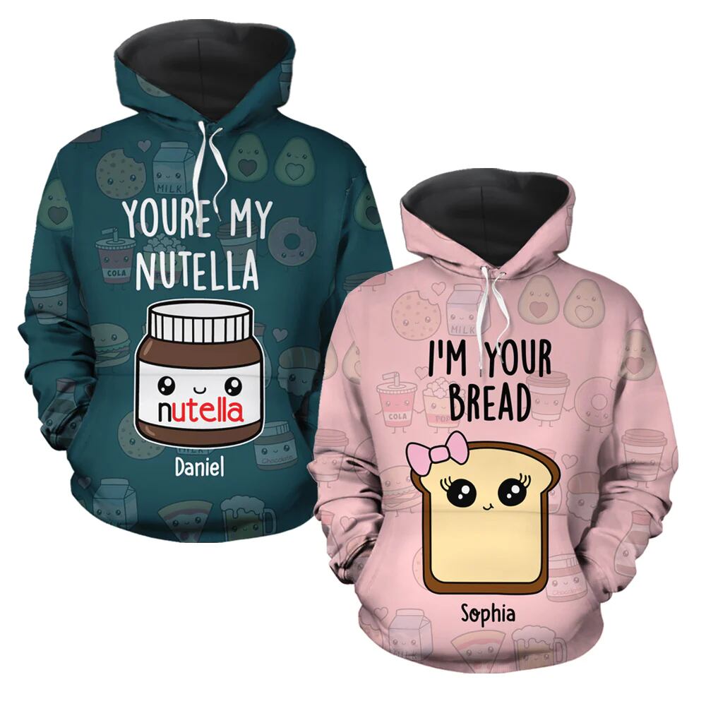 男性用3Dプリントパーカー、私はあなたのブレッドスウェットシャツ、cpセット、面白いデザインプルオーバーで、私はヌテラ、サンバルタンギフトです