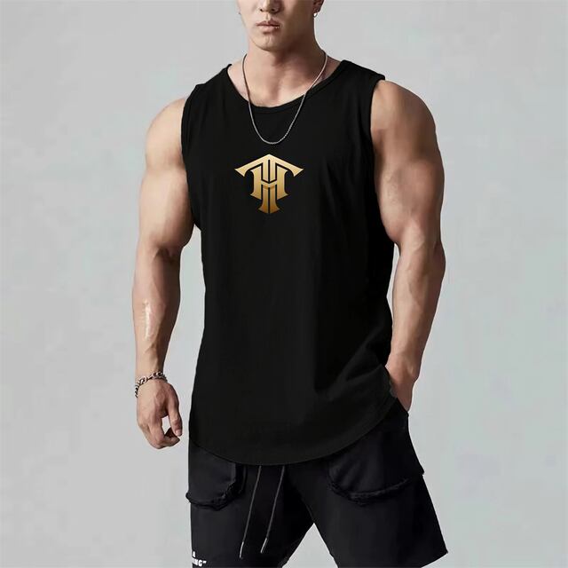 メンズプリントTシャツ,ラウンドネック,ノースリーブ,通気性ベスト,スポーツウェア,カジュアル,夏