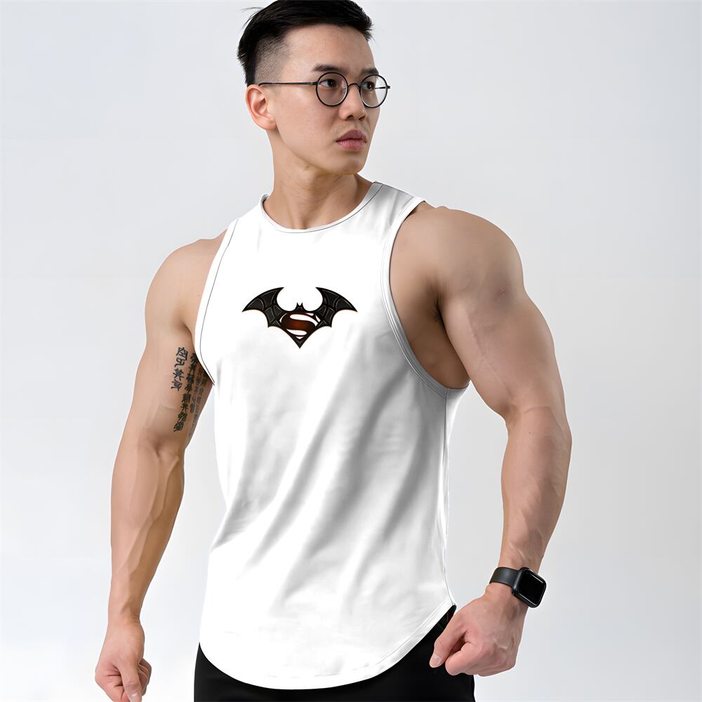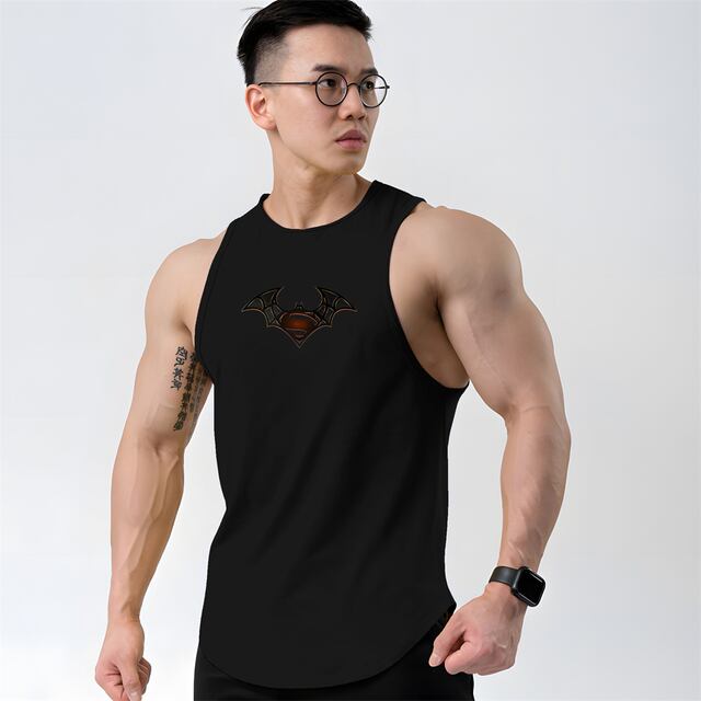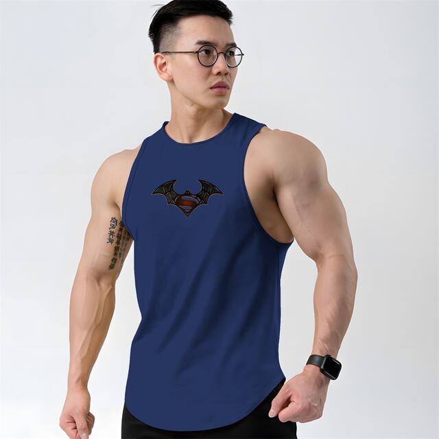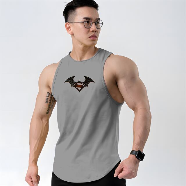 メンズプリントの通気性タンクトップ,ノースリーブ,ラウンドネック,速乾性,ランニング,フィットネス,トレーニング