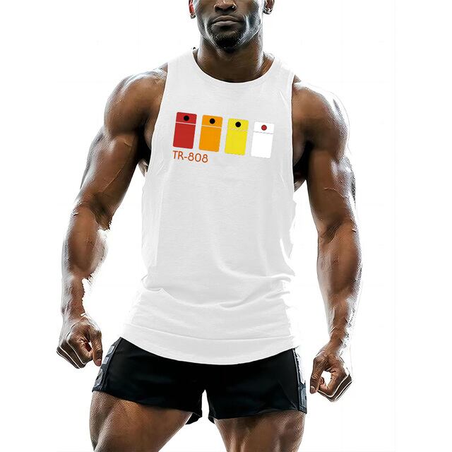 メンズノースリーブTシャツ,ヒップホップスタイル,文字がプリントされた黒のスポーツウェア