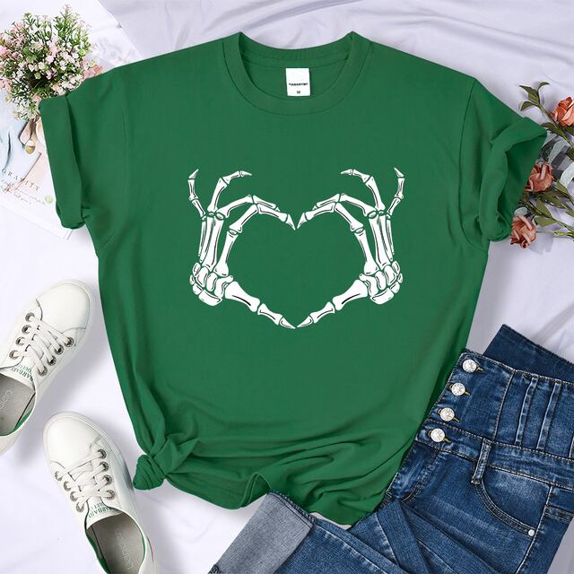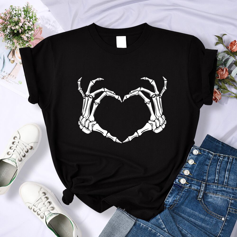 女性のための通気性のあるTシャツ,手作りの骨,ハート,レトロ,クリエイティブ,クロップトップ,クールな夏服