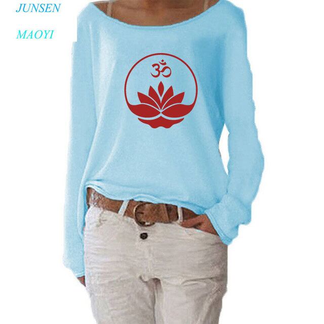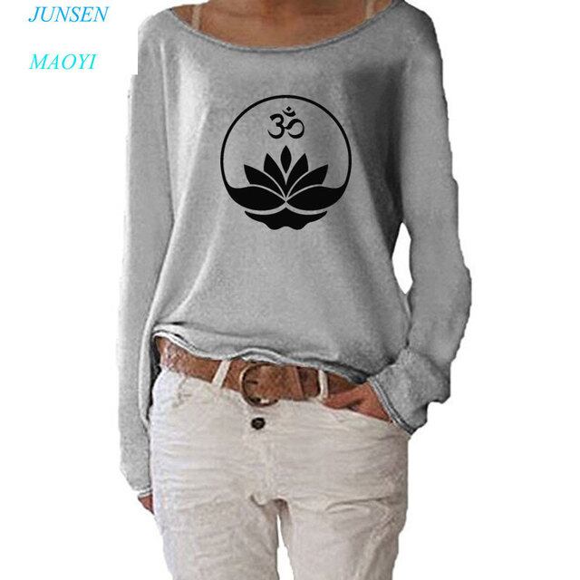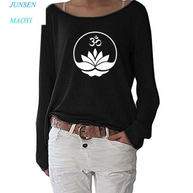 Budha-女性のための瞑想プリントTシャツ,長袖コットンTシャツ,カジュアルなストリートウェア