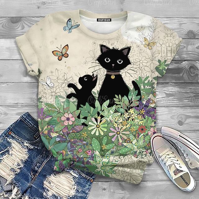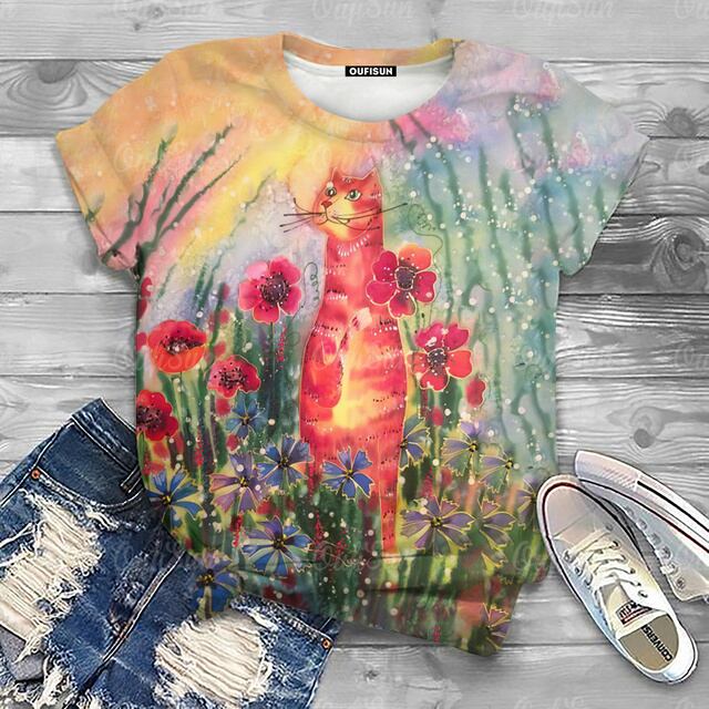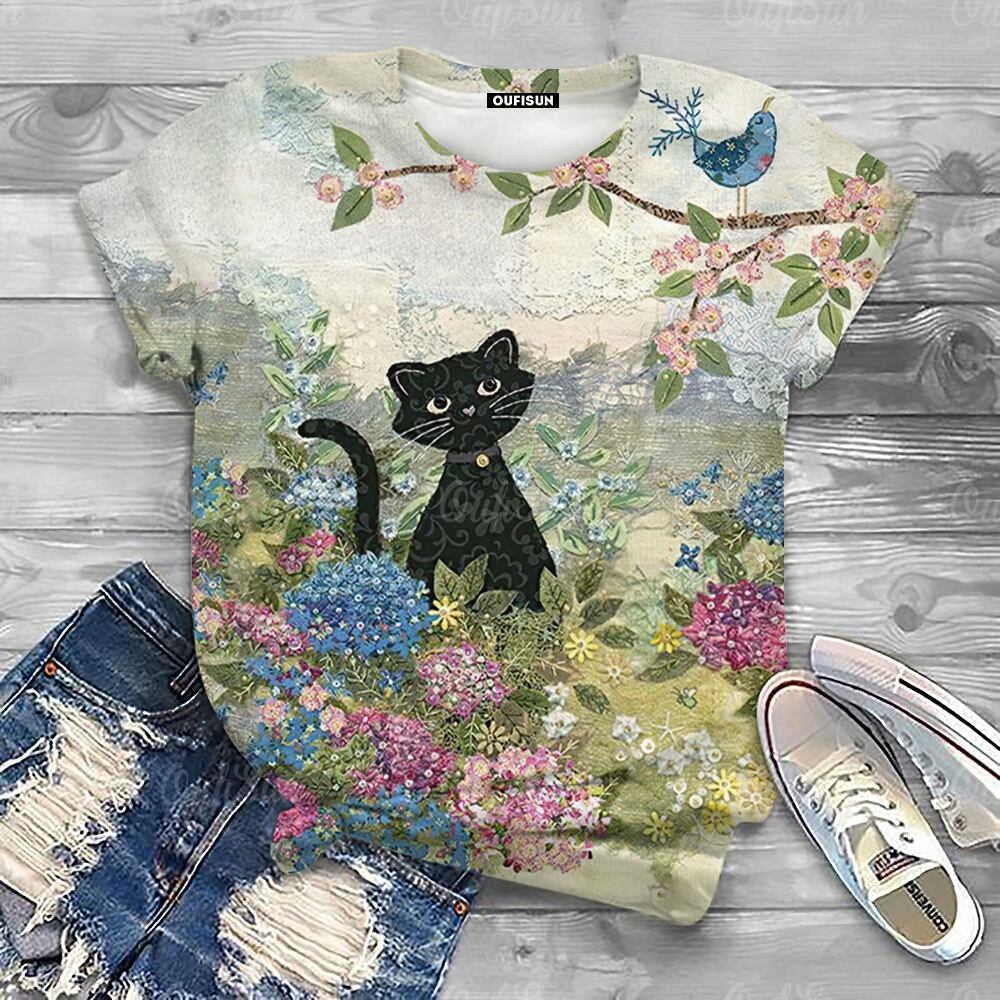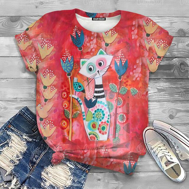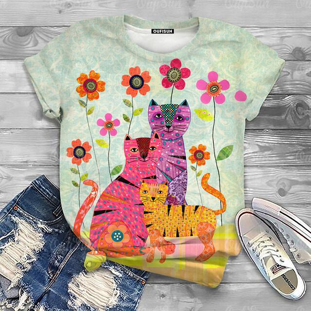 女性用半袖動物Tシャツ,特大原宿服,夏,2024