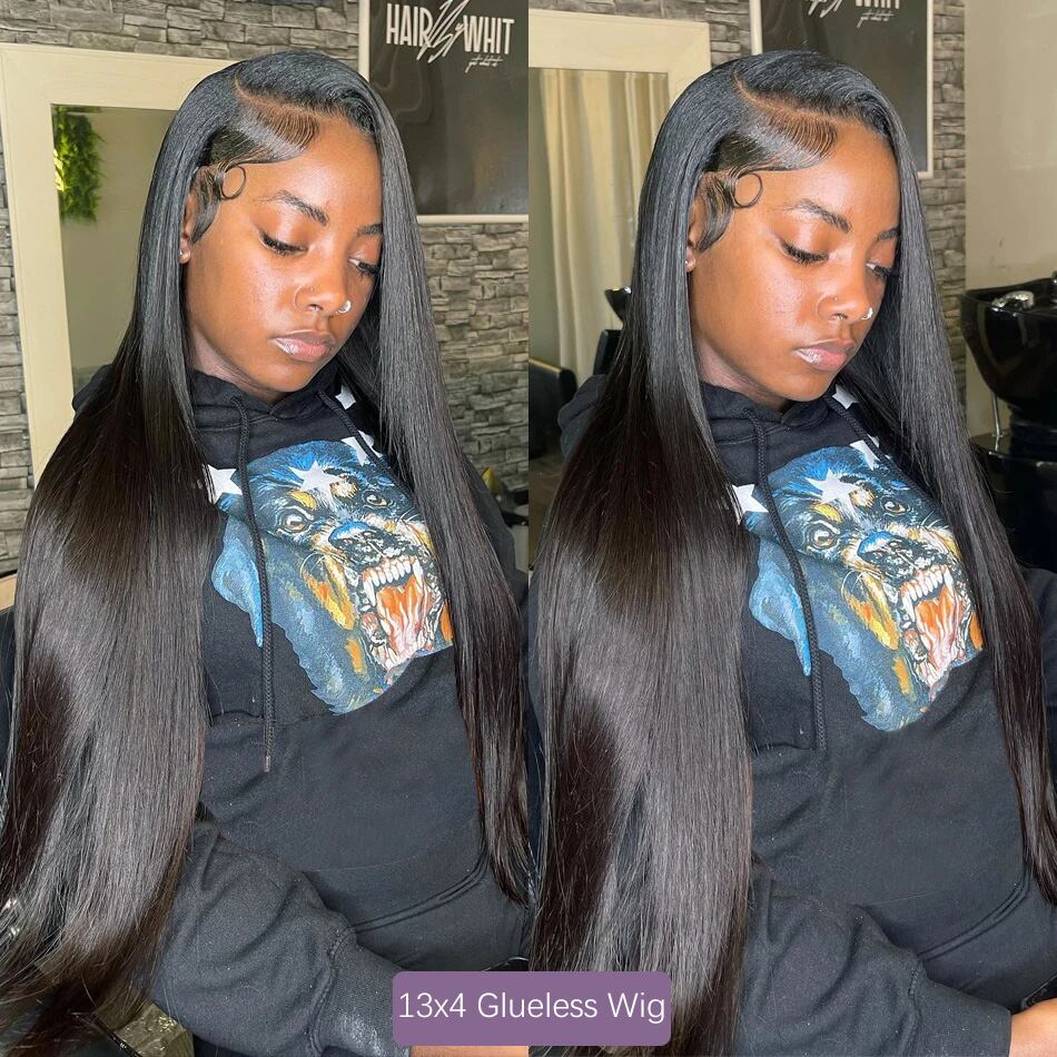 女性のためのレミーヘアウィッグ、ボーンストレート、プレブリーノット、レースフロント、人間の髪の毛、透明なレース、肌にブレンド、7x5、13x4