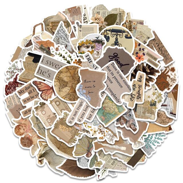 レトロなスタイルの装飾ステッカー,ビンテージパターン,ダイアリープランナー,スクラップブッキング,文房具,クラフトステッカー,52個