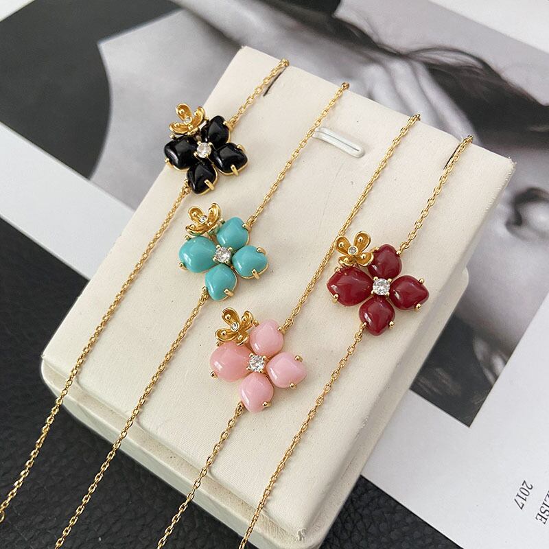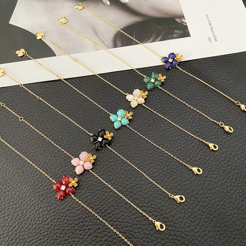 女性用4リーフフラワージルコンブレスレット,18カラット金メッキ,天然石,高級ジュエリー,ファッションジュエリー,ギフト