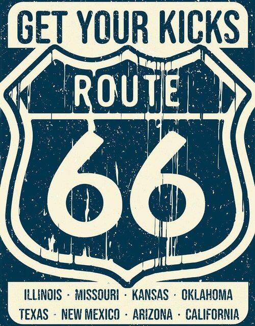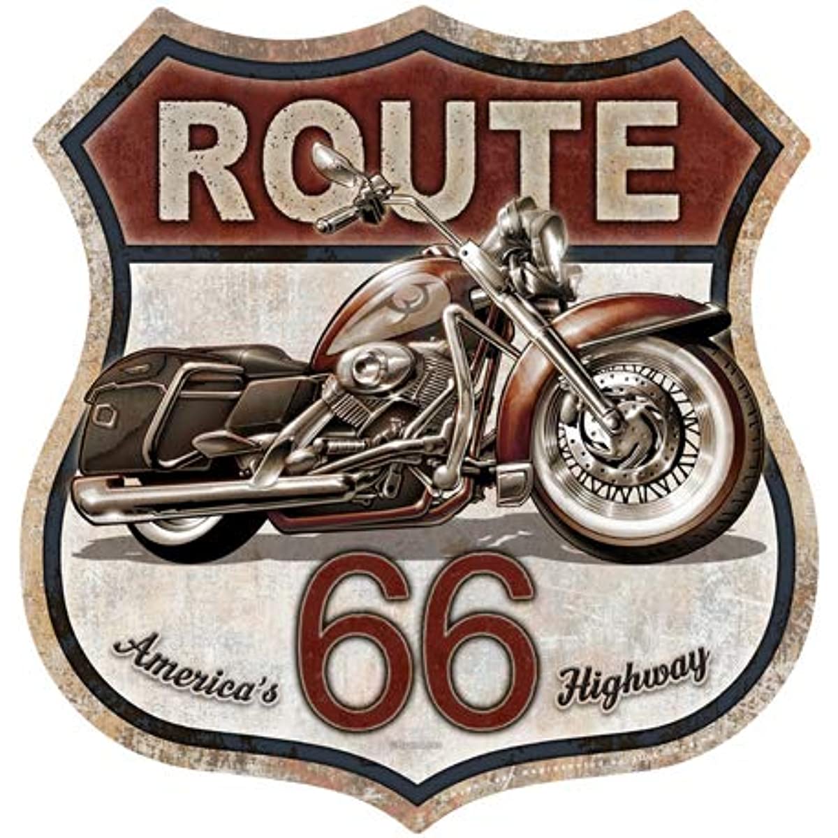 ノスタルジックヴィンテージメタルの壁の装飾、ルート66のサイン、バイクシールド
