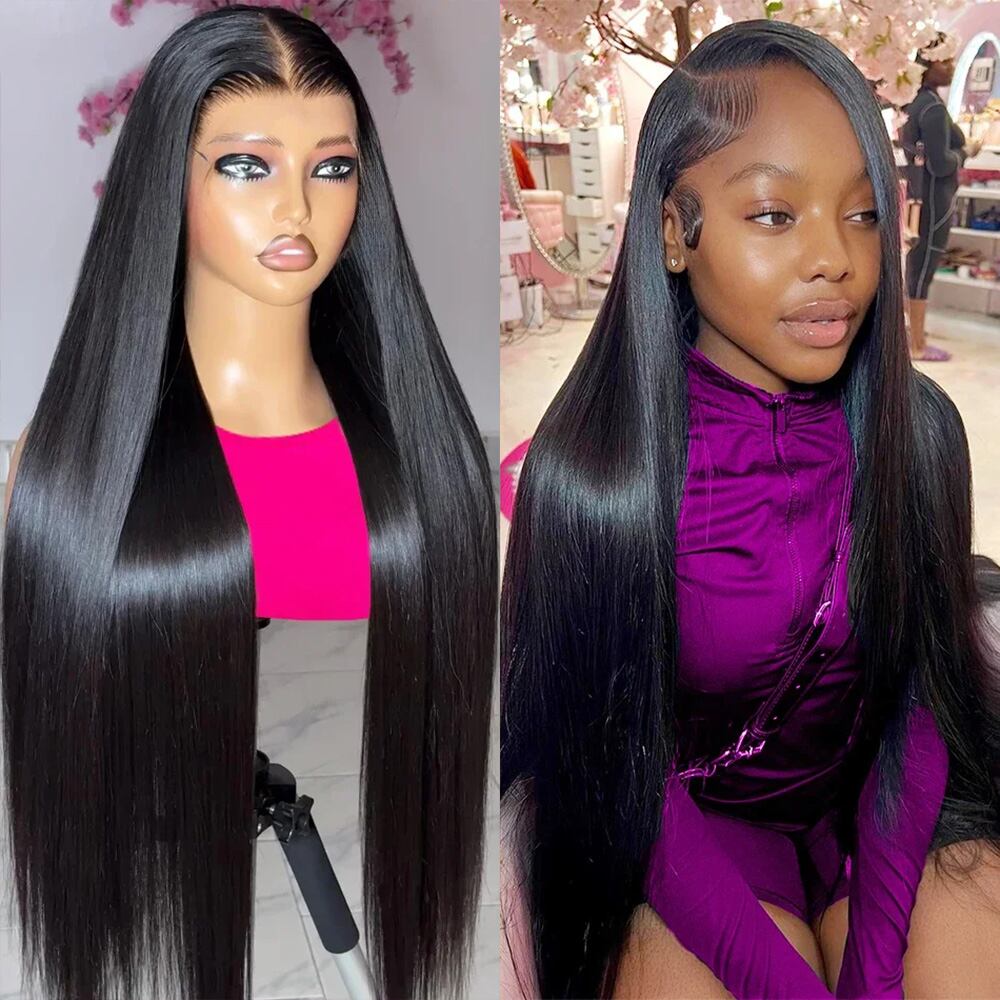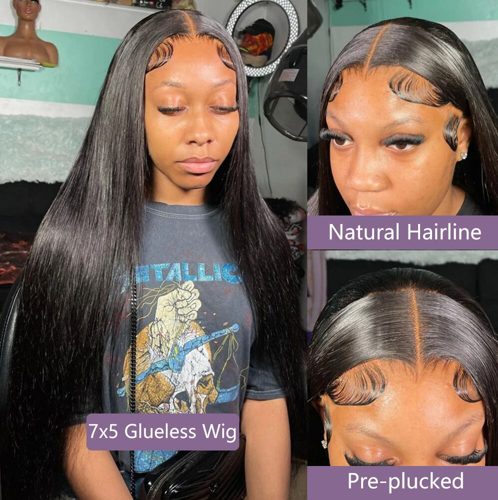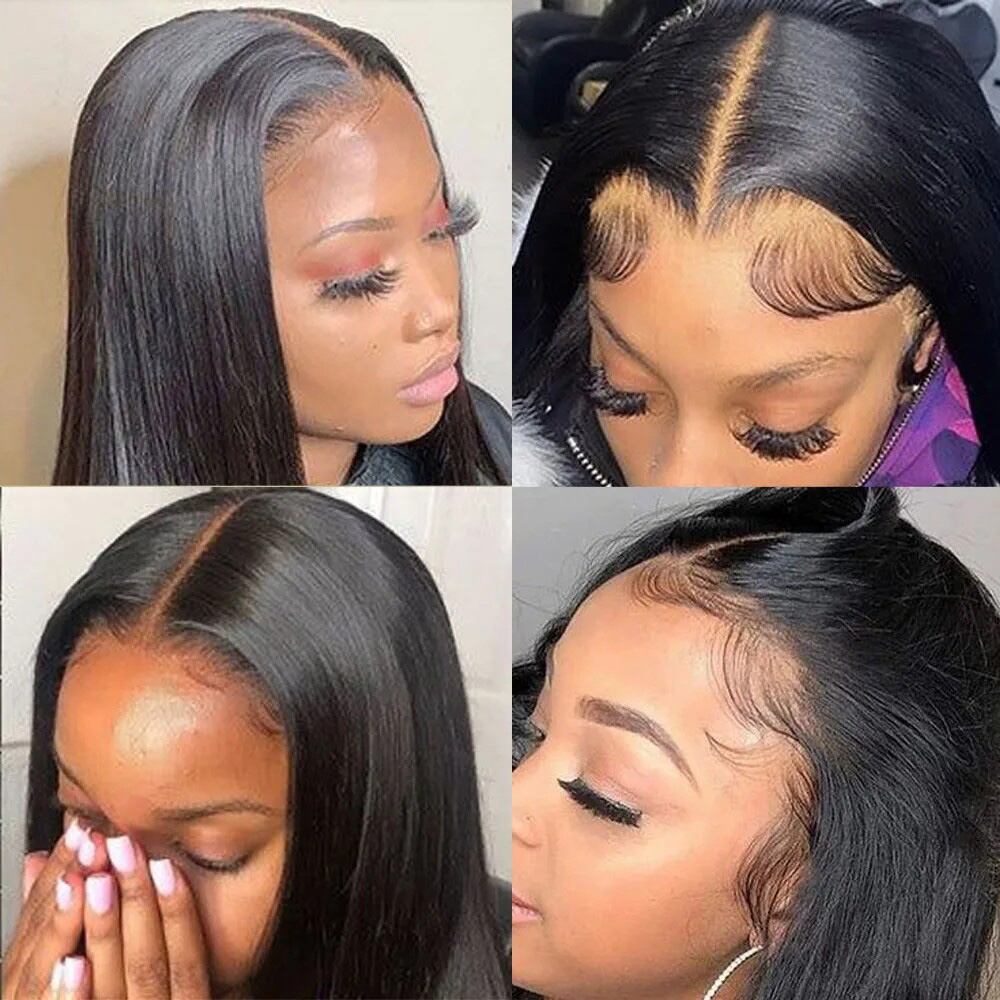 女性のための自然な髪のかつら,透明なレースのかつら,肌にブレンド,滑らか,7x5, 13x4,事前に漂白された結び目