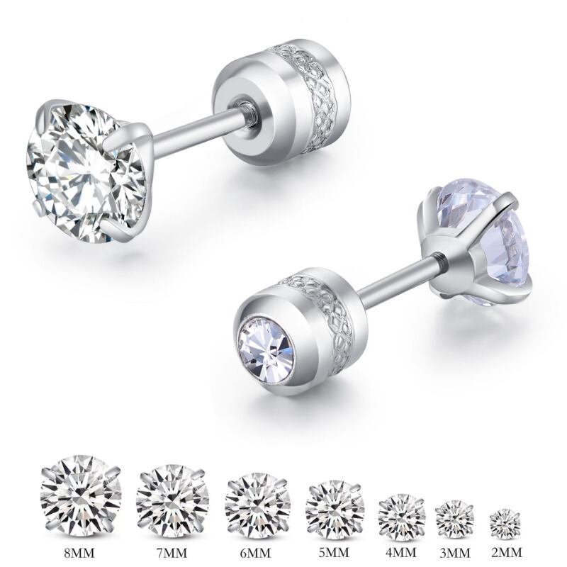 男性と女性のためのスチールイヤリング,ジルコニアスクリュージュエリー,背中の開いたつま先,耳のピアス,ギフト,20g, 2個