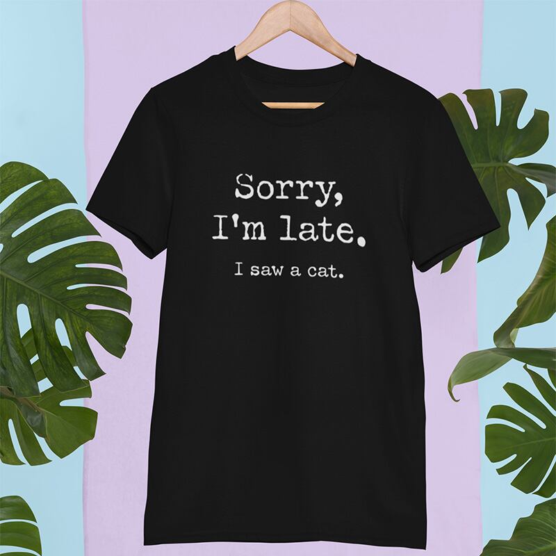 綿100% Tシャツ,猫と一緒に申し訳ありません,クジラの絵,オリジナルの猫のデザイン,家のプリント,サイズ2020