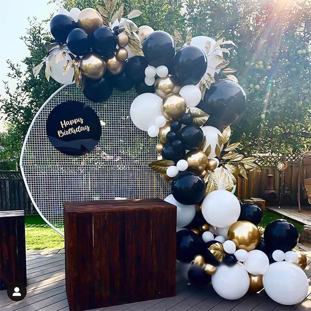 風船のアーチ型の花輪,メタリックモノクロの風船,黒,白,金,結婚式,男の子,ベビーシャワー,誕生日パーティーの装飾,1セット