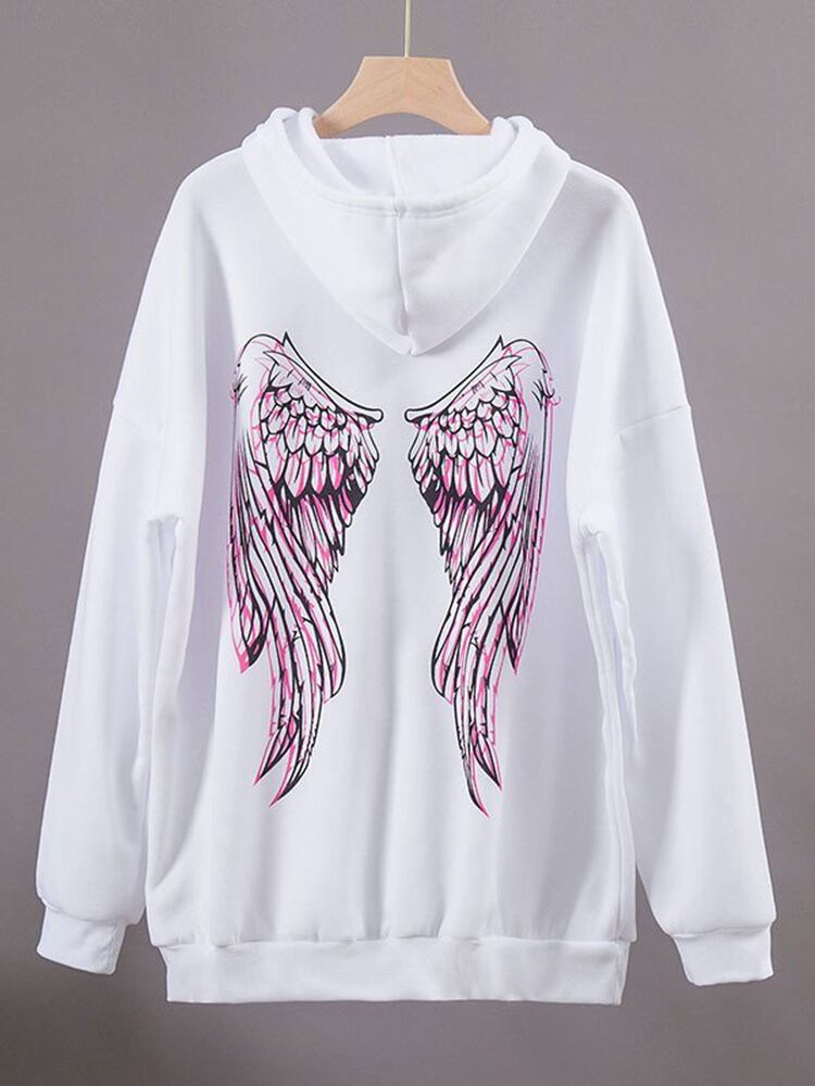 Iにはプリントされた翼のあるスウェットシャツ,女性用スウェットシャツ,グラフィック,特大パーカーのペアがあります
