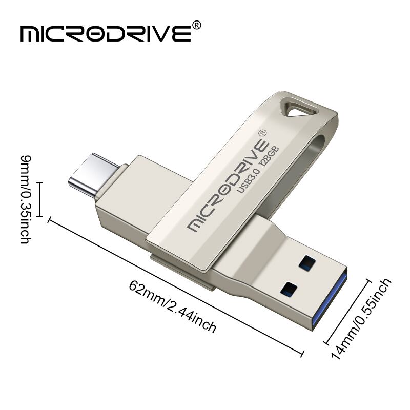 2 in 1 USBフラッシュドライブ,3.0 otgメタルメモリ,64GB,128GB,256 GB,USB-c