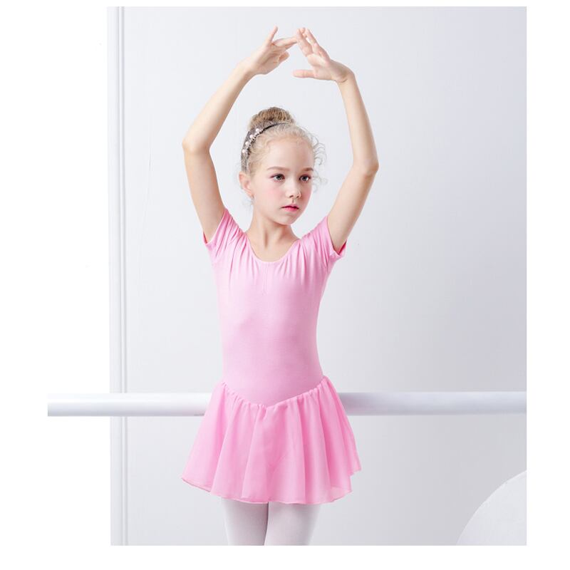 バレエドレス体操レオタード女の子のため子供半袖バレエシフォンレオタードちょう結びダンスウェア
