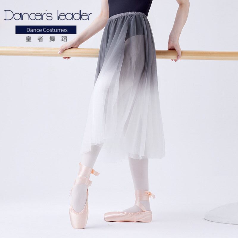 女性ロングシフォンバレエスカート大人のためのスカートソフト勾配グレーバレエ衣装大人少女バレリーナ