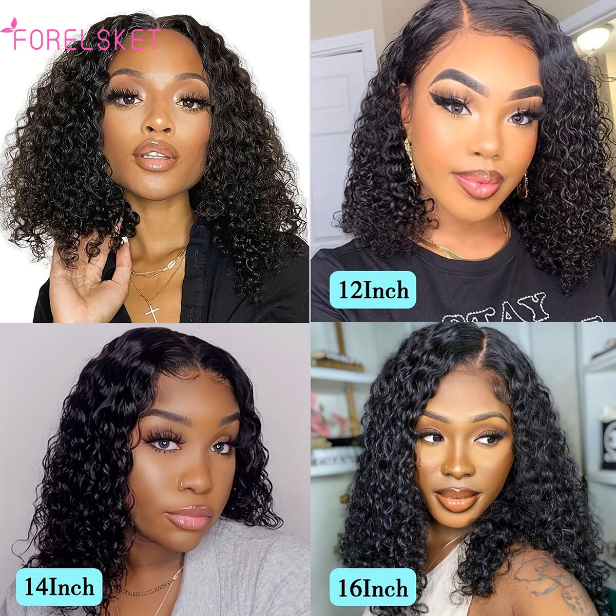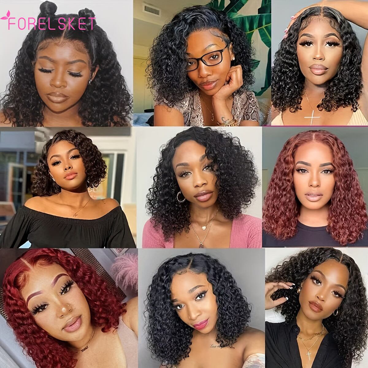 Forelsket-女性用ショートカーリーブラジアンボブウィッグ、ディープウェーブ人間の髪の毛、レースフロントウィッグ、4x4クロージャー、透明、13