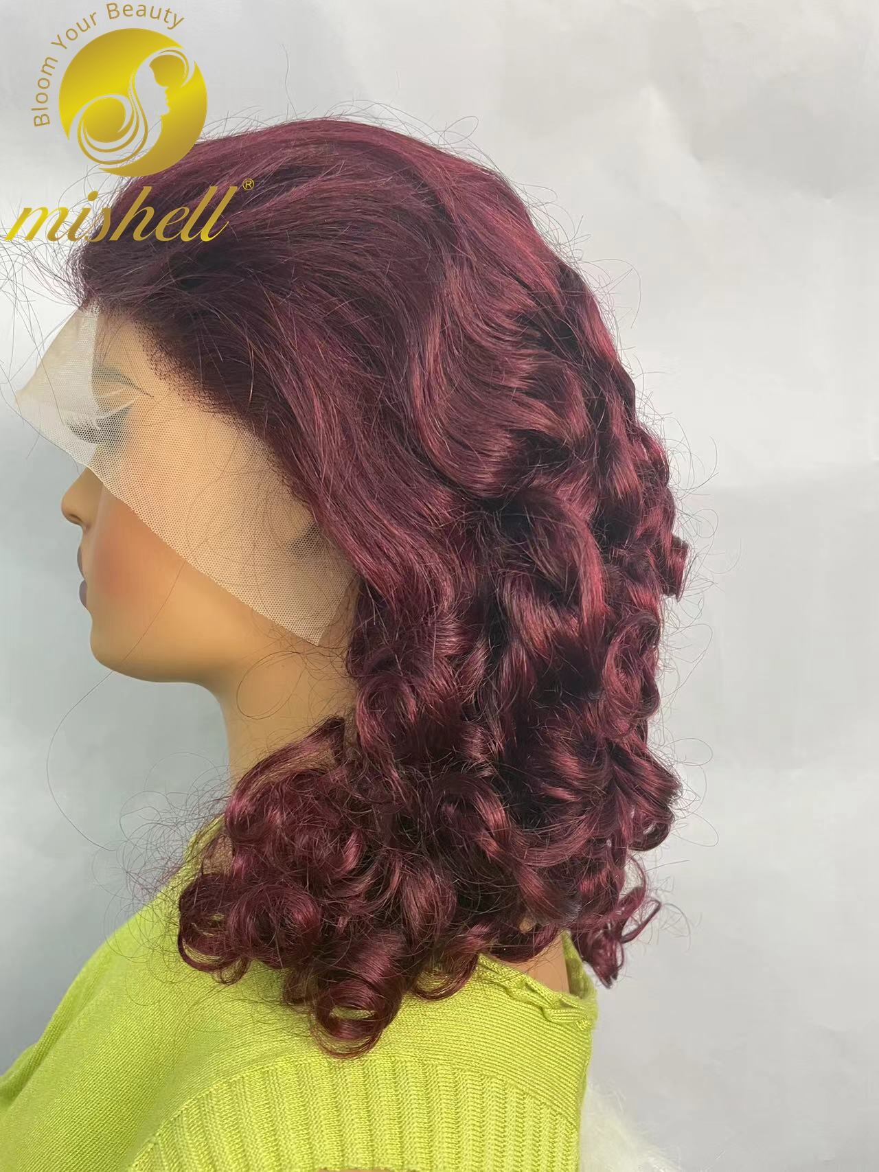 ブルゴーニュ女性用ナチュラルヘアウィッグ,透明レースフロントウィッグ,カラースプリング,99j,13x4,密度250%