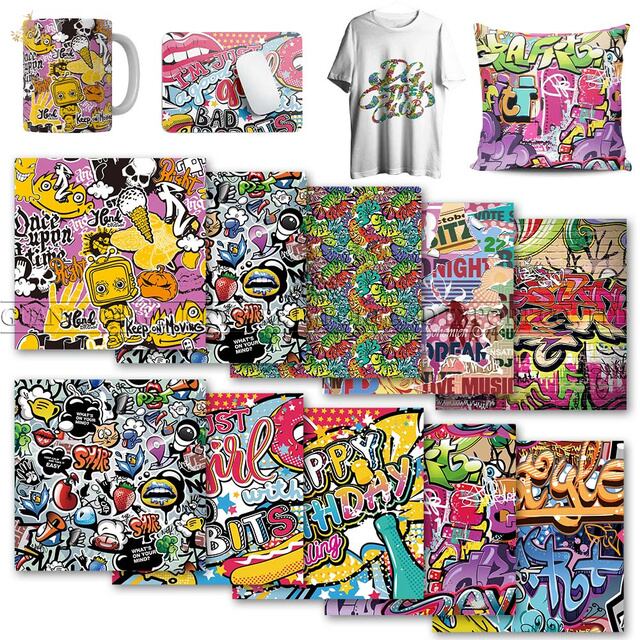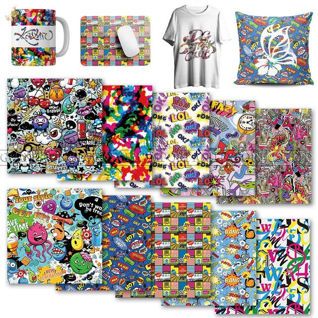ラッキーな女神の落書き折り畳み可能な転送インクシート10個12x12 ''カップTシャツ生地用の抽象的な転送紙昇華