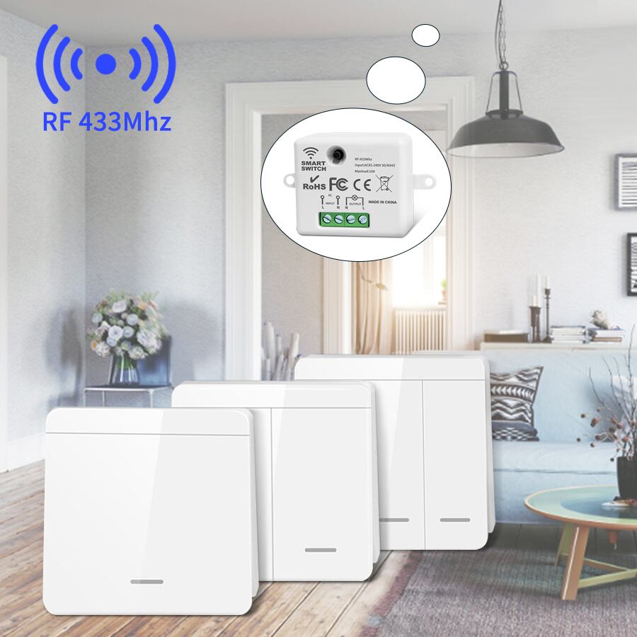 ワイヤレスリモコン付きスマートウォールスイッチ,リレーレシーバー,ウォールパネル,LEDランプ,1ギャング,2ギャング,110v,220v,10a,4