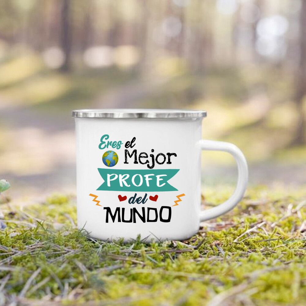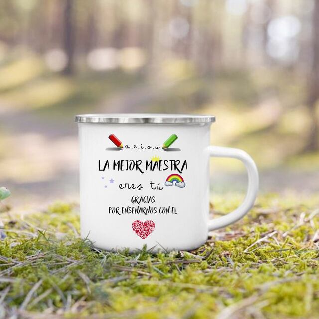 世界中の教師のためのヴィンテージハンドルドリンクウェア、スペイン語のプリントカップ、クリエイティブなコーヒーカップ、ドリンク用のエナメルカップ、教師向