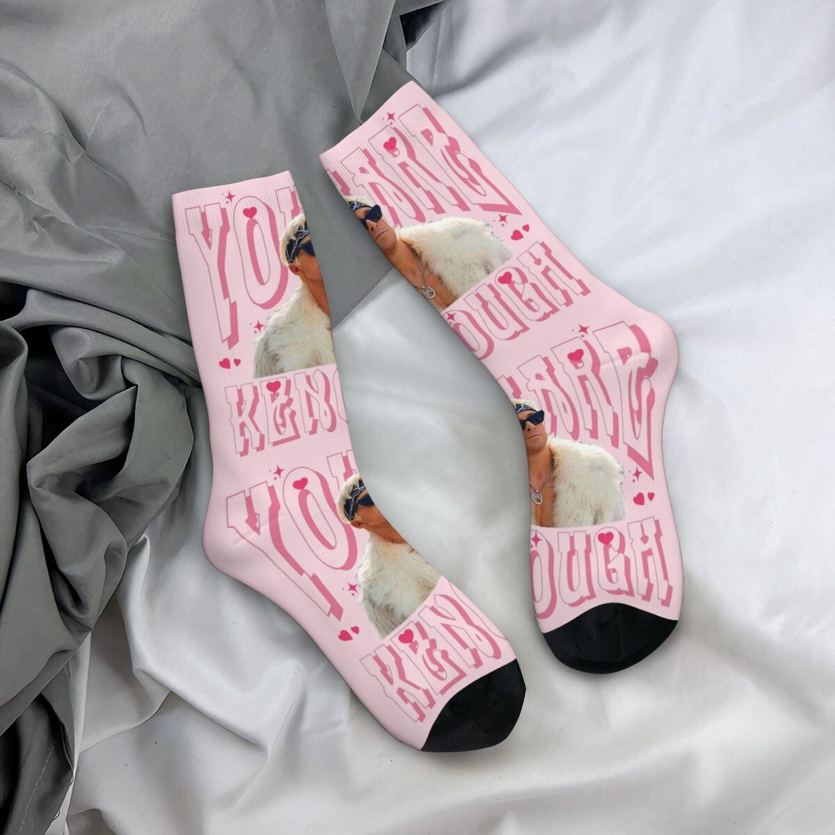 男性と女性のケンは、こちらのピンクのバーベンシュタインソックス、面白い、ハッピーソックス、中間管、クレイジーなギフト、春、秋、冬